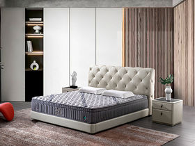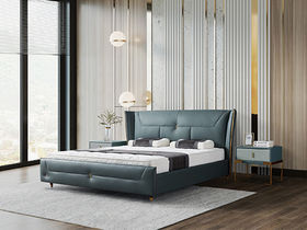 e家优选 轻奢 接触面头层牛皮 松木 实木多层板 高回弹海绵 蓝色 1.8米皮床