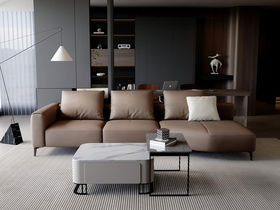 左右家居 现代简约 接触面头层牛皮 进口落叶松实木框架+蛇形弹簧系统+水性胶 高密度海绵 2.82米沙发