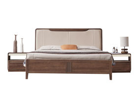 匠心 中式 榄仁木+实木多层板+香槟色超纤皮 1.8米床