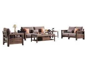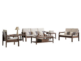 匠心 中式 榄仁木+实木多层板 单人+双人+三人 沙发