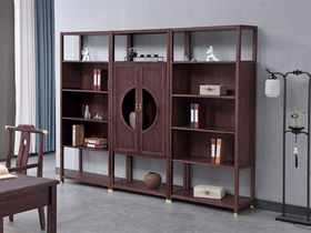 匠心 中式 榄仁木+实木多层板 书柜中柜