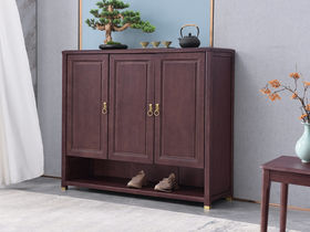 山止 新中式 橡胶木+实木多层板 紫檀色 三门鞋柜
