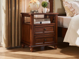 多纳宝 美式 美式 鹅掌楸木+脚柱橡胶木 方形床头柜