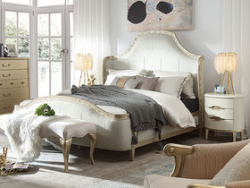 艾美侈 美式 进口榉木+贴箔+雪尼尔面料+实木床板 银箔金 1.8米床