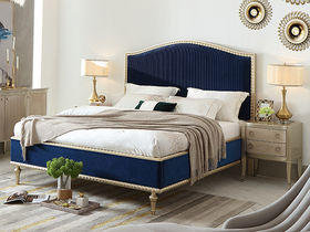艾美侈 美式 俄罗斯桦木+软包+实木床板 香槟金 1.8米皇帝床