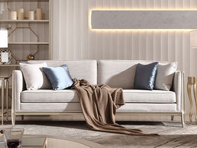 艾美侈 美式 俄罗斯桦木+棉麻布 珍珠银 三人位2.27米沙发