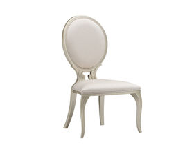 艾美侈 美式 进口榉木+超纤皮 香槟银+古典白 无扶手餐椅1把