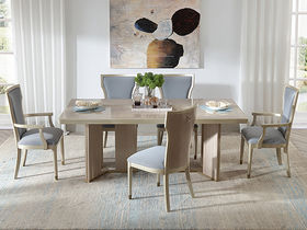 艾美侈 美式 进口榉木+艳阳花木皮 香槟银+古典白 1.6米实木长餐桌