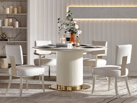 艾美侈 美式 进口榉木+艳阳花木皮 香槟银+古典白 圆形实木1.44米餐桌