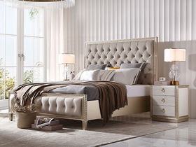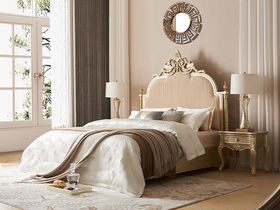 艾美侈 美式 进口榉木+实木雕花+丝绒软包+实木床板 香槟银 1.8米床