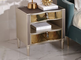 艾美侈 美式 榉木+实木多层板+抽屉面板P2级环保人造板 银箔金 床头柜1个