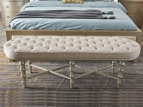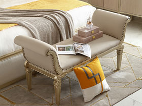 艾美侈 美式 进口榉木+超纤皮 香槟银 床尾凳