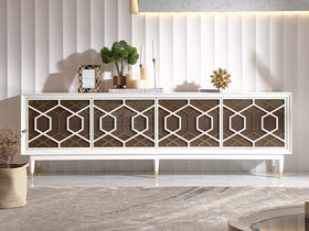 艾美侈 美式 进口榉木+亚克力+不锈钢脚套+E1级密度板雕花 雅典白 2.2米电视柜