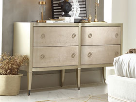 艾美侈 美式 进口榉木+雀眼木皮 珍珠银 1.6米四斗柜