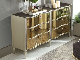 艾美侈 美式 进口榉木+桦木皮+玻璃+电渡镜片+不锈钢拉手 珍珠银 六斗柜