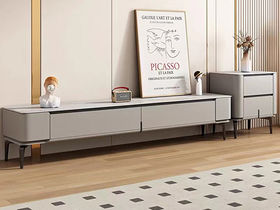 维利品尚 现代简约 新款 中纤板灰色烤漆柜体+中纤板贴皮抽屉+碳素钢脚+6厘岩板面 电视柜