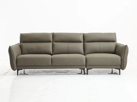 A系优选 极简 接触面头层牛皮+实木框架+多层实木板+高回弹海绵+碳素钢五金 灰色 直排四人位 2.78米皮艺沙发
