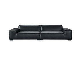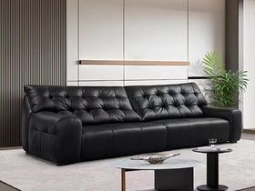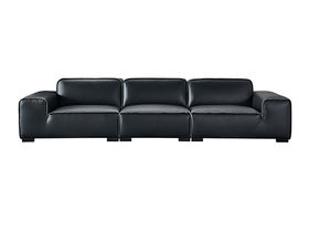 梵纳意简 网红 极简 接触面头层真皮+仿真皮+高回弹海绵+进口落叶松+全实木框架 黑色 直排3.4米沙发