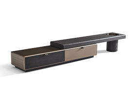 梵纳意简 极简 黑榆木+金属拉丝漆+不锈钢盘+E1中纤板 图片色 拉伸电视柜