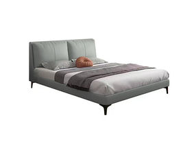 A系优选 现代简约 接触面头层牛皮真皮+实木框架+多层实木板+高回弹海绵+碳素钢五金脚+静音床板 浅绿色 1.8米床(价格不含高箱,如需定制请咨询客服)