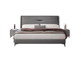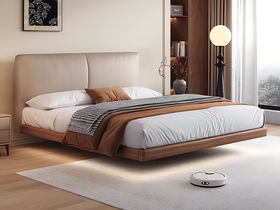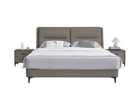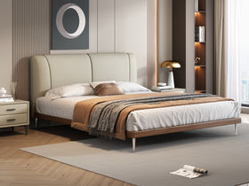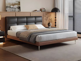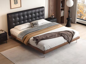 B系优选 现代简约 接触面头层牛皮+仿皮+高回弹海绵+实木框架+10分钢木排骨架+白蜡木床边 1.8米床