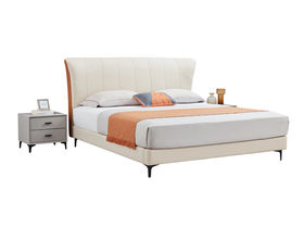 A系优选 现代简约 接触面头层牛皮真皮+实木框架+多层实木板+高回弹海绵+碳素钢五金脚+静音床板 米白色 1.8米床(价格不含高箱,如需定制请咨询客服)