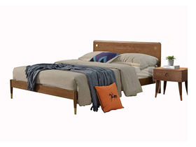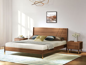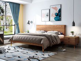 乐芙兰 北欧 进口白蜡木+多层实木板+松木床板 胡桃色 1.8米床