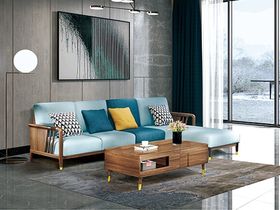 乐芙兰 北欧 进口白蜡木+全实木框架+多层实木板+高回弹海绵+科技布 图片色 3+贵妃右转角2.85米沙发