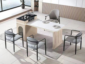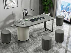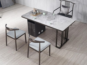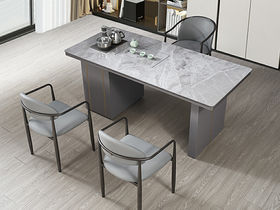 上铭轩 现代简约 岩板+E1级中纤板+烤漆柜体+全自动电茶炉+茶具(不含椅子) 拉伸 1.5米岛台 茶台