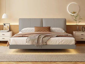 B系优选 现代简约 生态真皮+进口落叶松+多层实木板+高回弹海绵+碳素钢五金+10分钢木排骨架 浅灰 1.8米悬浮床带灯(价格不含高箱,如需定制请咨询客服)