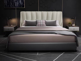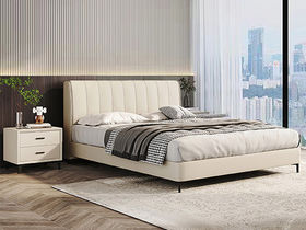 B系优选 极简 接触面头层真皮+进口落叶松+多层实木板+高回弹海绵+碳素钢五金+10分钢木排骨架 象牙白 1.8米床(价格不含高箱,如需定制请咨询客服)