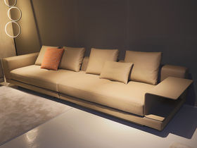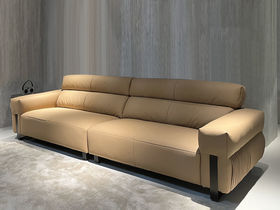 德卡图 现代简约 松木+多层板板+头层牛皮全皮+高回弹海绵+靠包羽绒填充+胶脚 四人位 2.8米沙发