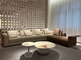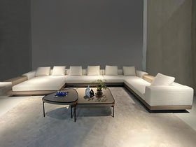 德卡图 现代简约 接触面头层黄牛皮+仿真皮 黑钛拉丝不锈钢五金框架 俄罗斯落叶松+多层板 填充: 靠包羽绒填充+高回弹海绵 3+五边形左转角 3.5米沙发