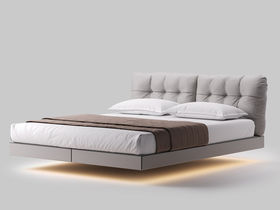 德卡图 现代简约 全头层黄牛皮 +棉麻布全实木整体床架俄罗斯落叶松+多层板+高弹海棉+紫罗兰海棉 1.8*2.0米悬浮床