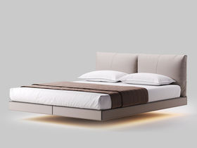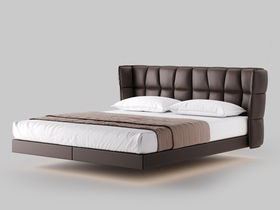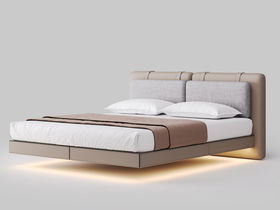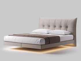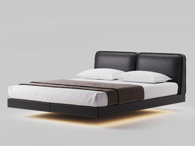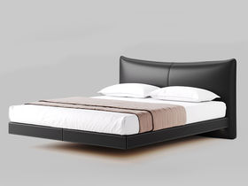 德卡图 现代简约 全头层黄牛皮 全实木整体床架俄罗斯落叶松+多层板+高弹海棉+紫罗兰海棉 1.8*2.0米悬浮床