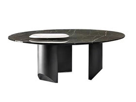 梵纳意简 极简 电镀不锈钢+贴纸大理石+实木多层板 1.35米餐桌(含转盘)