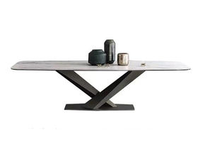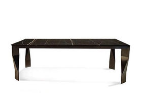 梵纳意简 极简 电镀不锈钢+贴纸大理石+实木多层板 1.4米餐桌