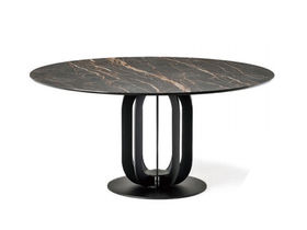 梵纳意简 极简 轻奢 电镀不锈钢+贴纸大理石+实木多层板 1.35米餐桌(含转盘)