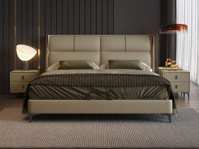 A家家居 现代简约 床头:接触面头层牛皮+海绵 内框:实木条+实木多层板 1.8米 床