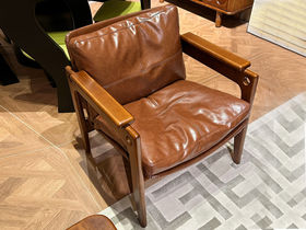 中古·森 网红 中古风 进口白蜡木+多层实木板+高回弹海绵+仿真皮 休闲椅