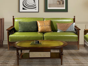 中古·森 网红 中古风 进口樱桃木+多层实木板+蛇形弹簧+全实木框架+仿真皮+高回弹海绵 三人位 2.19米沙发