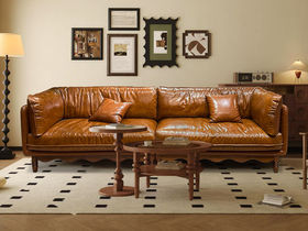 中古·森 网红 中古风 进口樱桃木+多层实木板+蛇形弹簧+全实木框架+接触面头层真皮+高回弹海绵 直排2.8米沙发