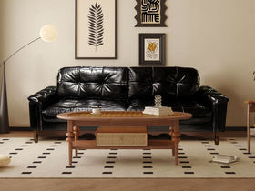中古·森 网红 中古风 进口樱桃木+多层实木板+蛇形弹簧+全实木框架+仿真皮+高回弹海绵 直排2.6米沙发