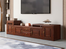 宝瑞·檀风 新中式 印尼金花梨木框架+多层实木板贴皮+电镀五金+实木导轨 紫檀色 拉伸电视柜