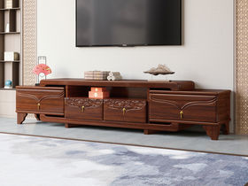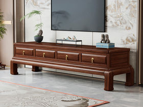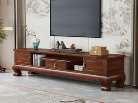 宝瑞·檀风 新中式 印尼金花梨木框架+多层实木板贴皮+电镀五金+实木导轨 紫檀色 电视柜