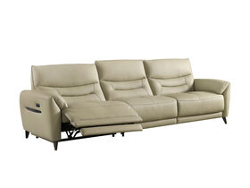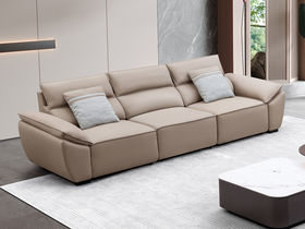甄品家具 现代简约 接触面头层真皮+太空绵+高回弹海绵+合金功能钢架 杏色 左床+中床+右床 电动功能2.77米沙发