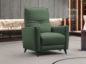 甄品家具 现代简约 接触面头层真皮+太空绵+高回弹海绵+合金功能钢架 深绿色 双扶手单带手动 单人位0.85米沙发