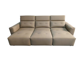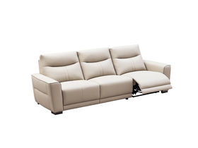 甄品家具 现代简约 接触面头层真皮+太空绵+高回弹海绵+合金功能钢架米白色 右电床+中电床+左电床 电动功能3.04米沙发床
