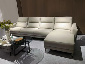 甄品家具 现代简约 接触面头层真皮+太空绵+高回弹海绵+合金功能钢架 浅黄色 右手R电+2中+左贵妃 电动功能3.42米沙发