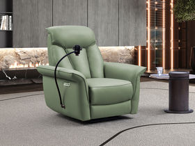 甄品家具 现代简约 接触面头层真皮+太空绵+高回弹海绵+合金功能钢架 绿青色 1R电 电动功能0.95米沙发